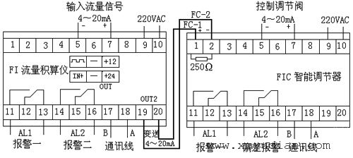 根據(jù)流量變送信號4~20mA輸入調(diào)節(jié)器與給定值作PID運算后輸出4-20mA的控制電流去控制氣動閥PCV1。